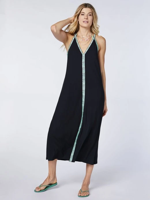 Wer auch am Strand nicht auf einen trendigen Look verzichten will, ist mit diesem Maxikleid von CHIEMSEE gut beraten. Das lange Kleid begeistert mit seinen knalligen Unifarben und zieht damit garantiert viele Blicke auf sich. Der tiefe V-Ausschnitt und das Ethnoband in Kontrastfarbe runden das Design des Strandkleids gelungen ab. Mit seinem lässigen Oversize-Schnitt und dem langen Maxirock fällt es besonders schön und luftig. Mit dem Maxikleid von CHIEMSEE wird jeder Strand zum Laufsteg!