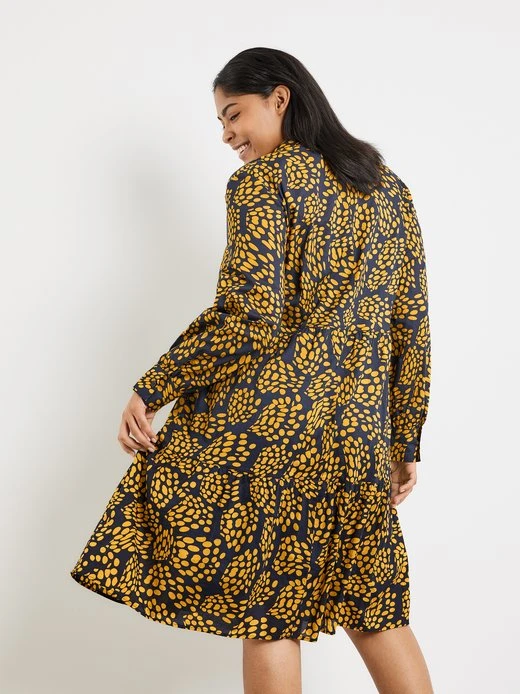 Was für ein wunderbares Kleid! Der hauchzarte Baumwoll-Voile mit Allover-Print versprüht modische Raffinesse und die lockere, gestufte A-Linie bietet viel Bewegungsfreiheit und schwingt bei jedem Schritt. Das mitgelieferte Unterkleid sorgt für Blickdichte. Du wirst es lieben!