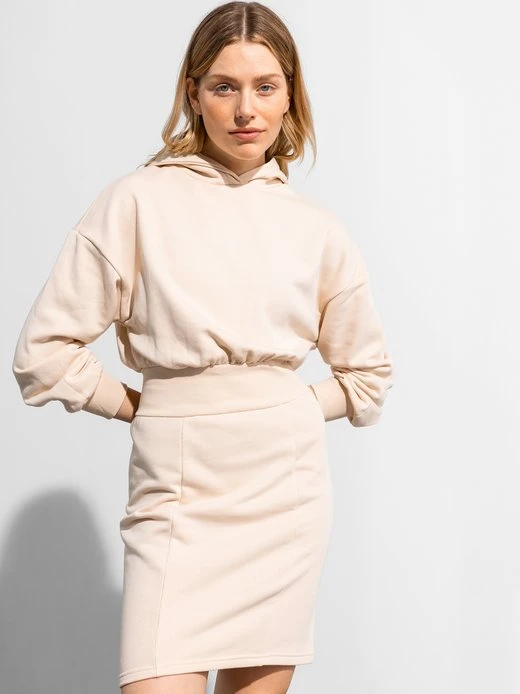 Kuscheliges Hoodie-Kleid mit gerippter und elastischer Taillennaht, figurschmeichelnd geschnitten