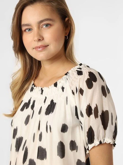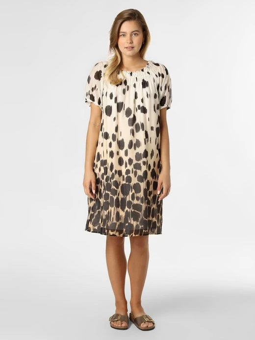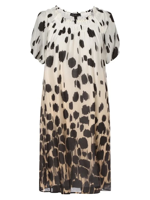 Der aufgegriffene Off-Shoulder-Trend erzeugt ein romantisch-verspieltes und zugleich modernes Gesamtbild: das Kleid von Marc Cain Collections.