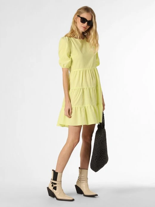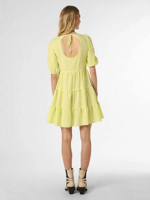 Puff Sleeves und Volants wirken mädchenhaft-verspielt, Wide Fit und Cutout im Rücken stehen für moderne Coolness: Das Kleid Komiri von HUGO ist ein gefragter Style.