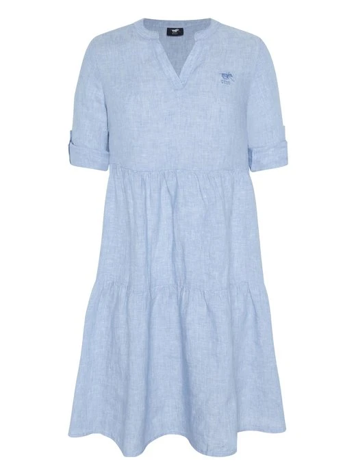 Sommer-Essential mit modernem Twist: Effektvolle Falten am Rockteil verleihen dem locker geschnittenen A-Linien-Kleid von POLO SYLT seine entzückende Optik. Die Ärmel können lässig gekrempelt und über Knöpfe fixiert werden. Einen Mini-Eyecatcher fügt das Label-Symbol an der Vorderseite hinzu. Dank des leichten Leinens sorgt das POLO SYLT Mädchen-Kleid vor allem an den warmen Tagen des Jahres für ein angenehmes Tragegefühl. Zudem zeichnet es sich durch Grüner Knopf und Made in Green Zertifizierungen aus.