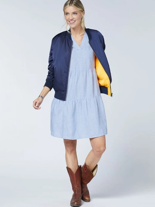 - V-Ausschnitt im Tunika-Stil und Krempelärmel