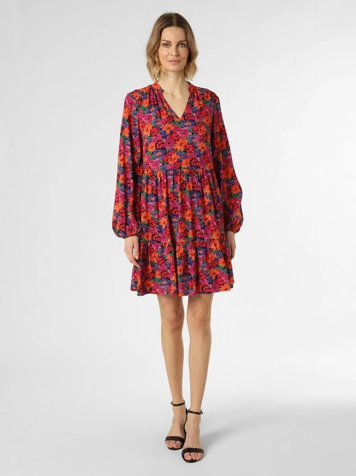 Erblüht im ausdrucksstarken Floral-Design mit angesagten Ballonärmeln und verspieltem Volantsaum: das Kleid VIKara von Vila.