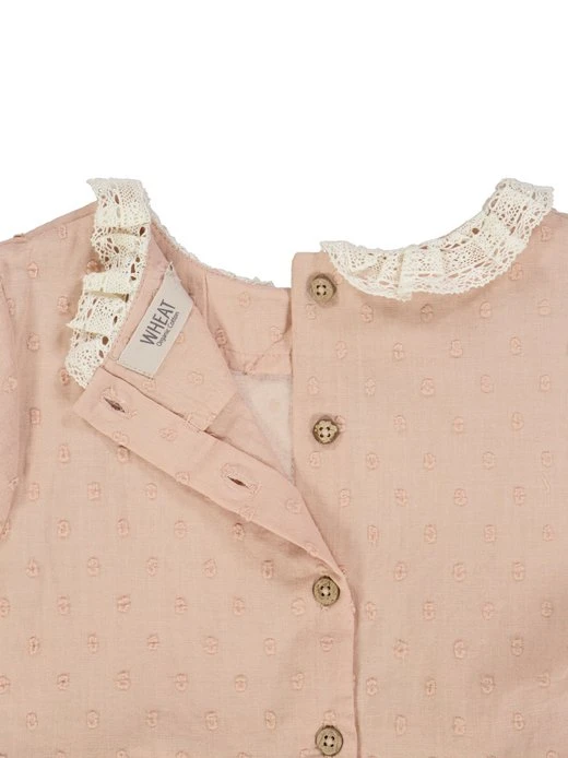 Wheat – Süßes kurzärmeliges gepunktetes Kleid aus weich gewebter Baumwolle für Kinder.